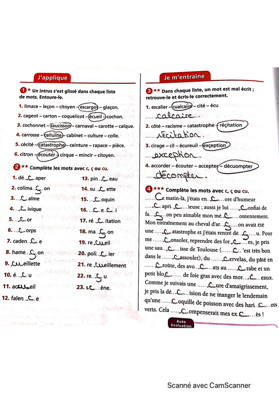 Fiche : c, cu, ç (correction)