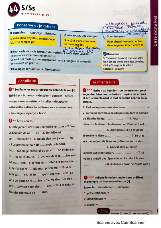1) Corriger la fiche "s,ss".