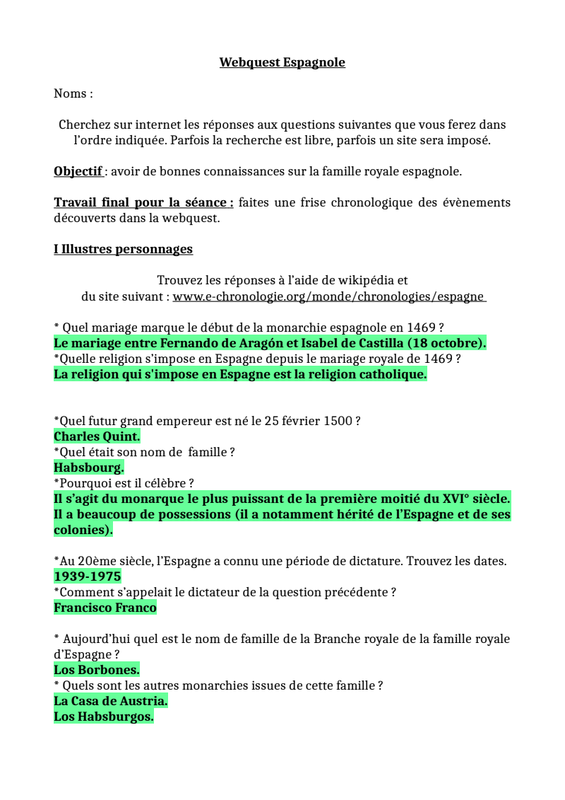 Correction Webquest Espagnol