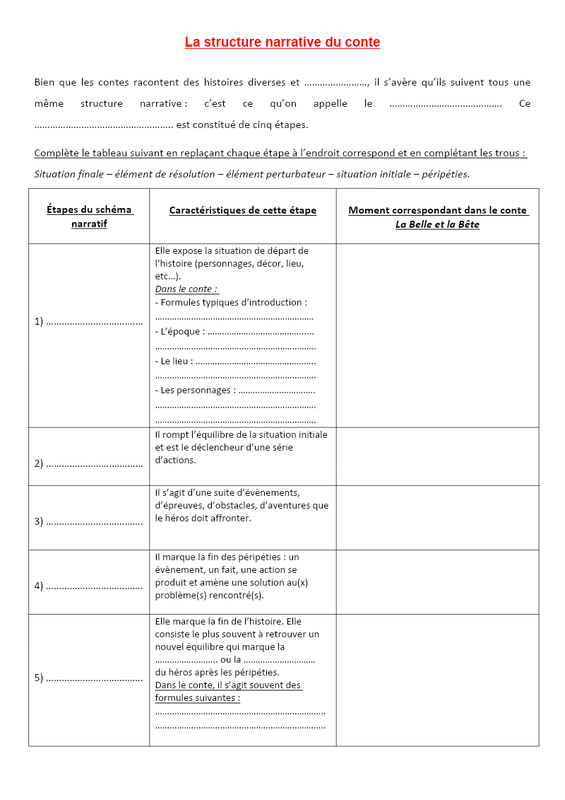 3) Exercice : Le conte troué (à faire le vendredi 27 mars).