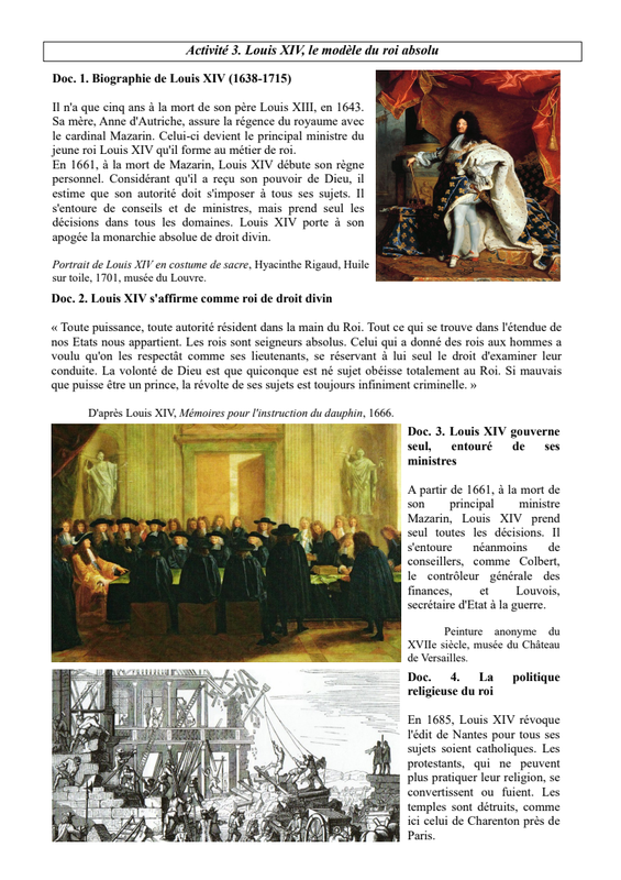 Ce sont les deux derniers cours de l'année. Vous reprendrez en 4e en Histoire juste après la fin du règne de Louis XIV, et l'on attendra de vous que vous sachiez ce qu'est la monarchie absolue. Donc, faites-les sérieusement, c'est dans votre intérêt, et ce afin de bien débuter en Septembre.